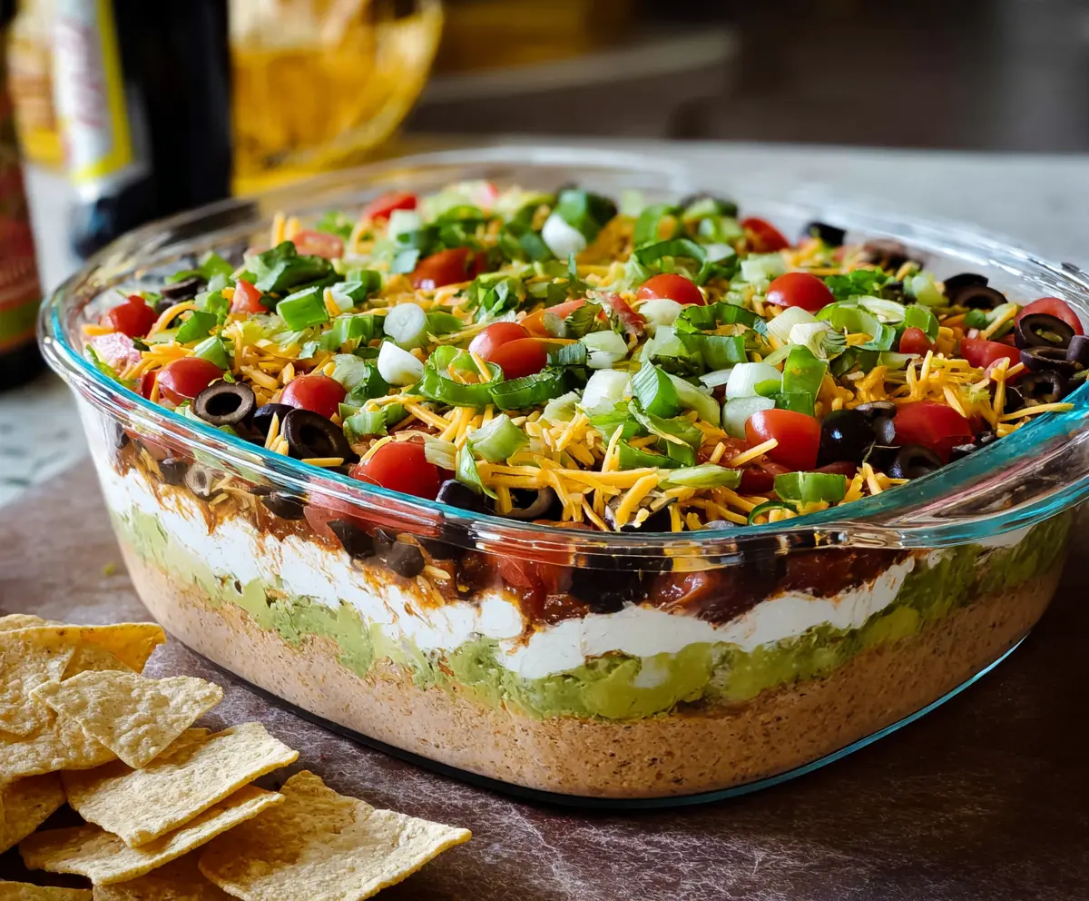 Yes! You can prepare the layers ahead of time and assemble the dip the day before. Just keep it covered and chilled in the fridge. However, it’s best to add fresh toppings right before serving for maximum freshness.