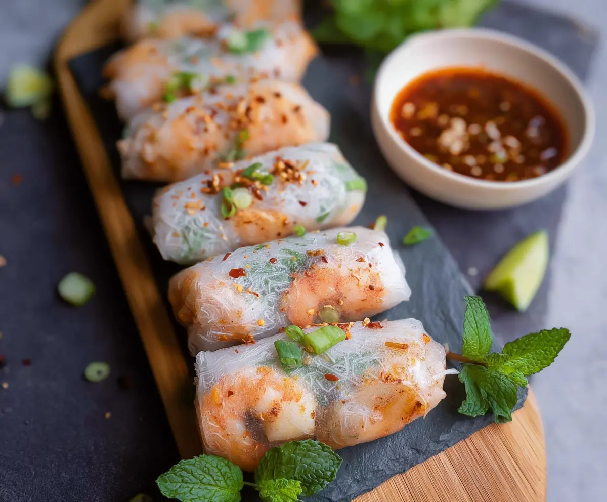 These Air Fryer Shrimp Rice Paper Rolls are fresh and full of flavor! Packed with shrimp, veggies, and herbs, they’re crispy on the outside and soft on the inside.
