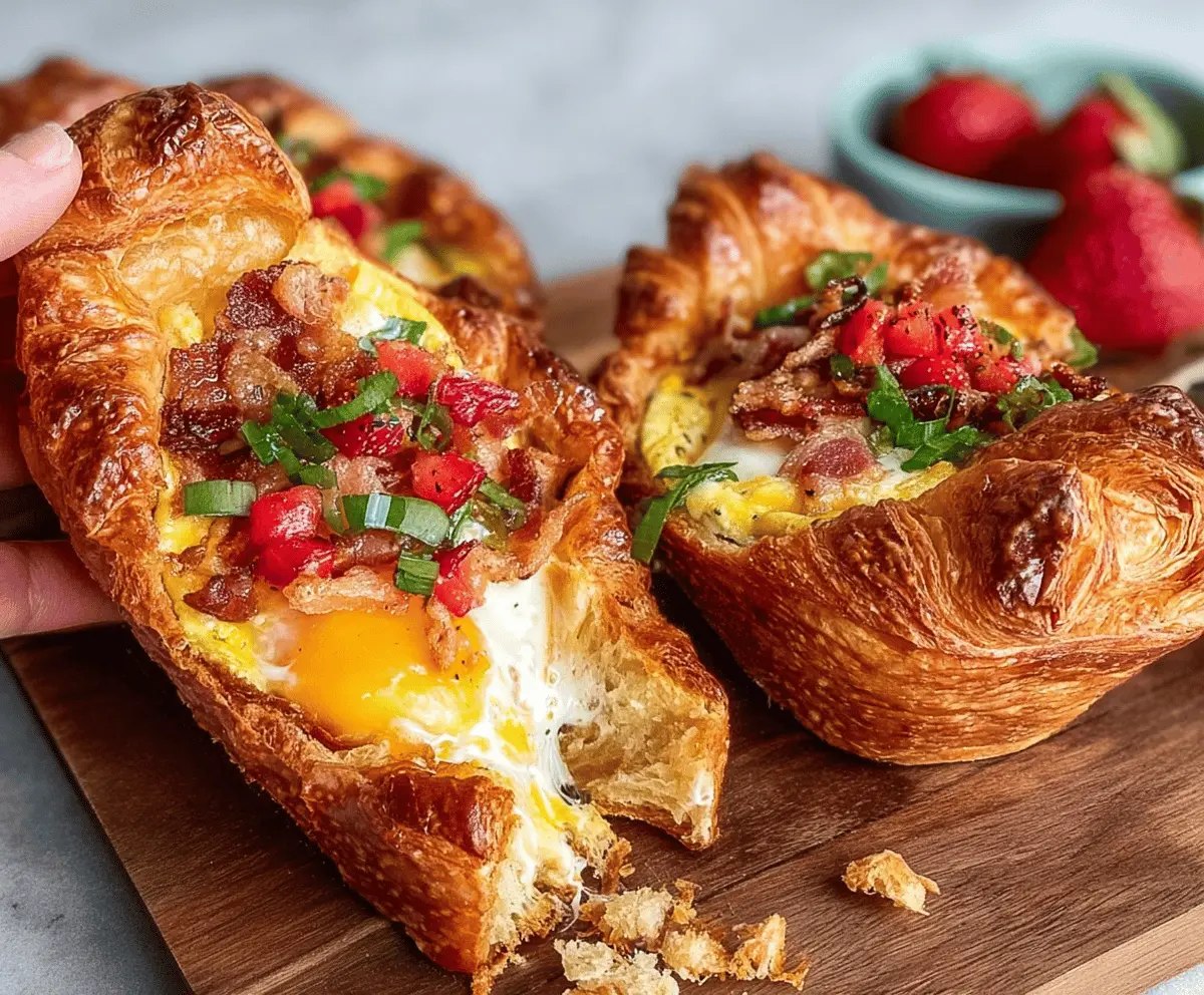 These breakfast boats are a fantastic way to start your day with a delicious combination of buttery croissants, savory eggs, and crunchy bacon. Perfect for a brunch get-together or a special breakfast! Enjoy! 😊