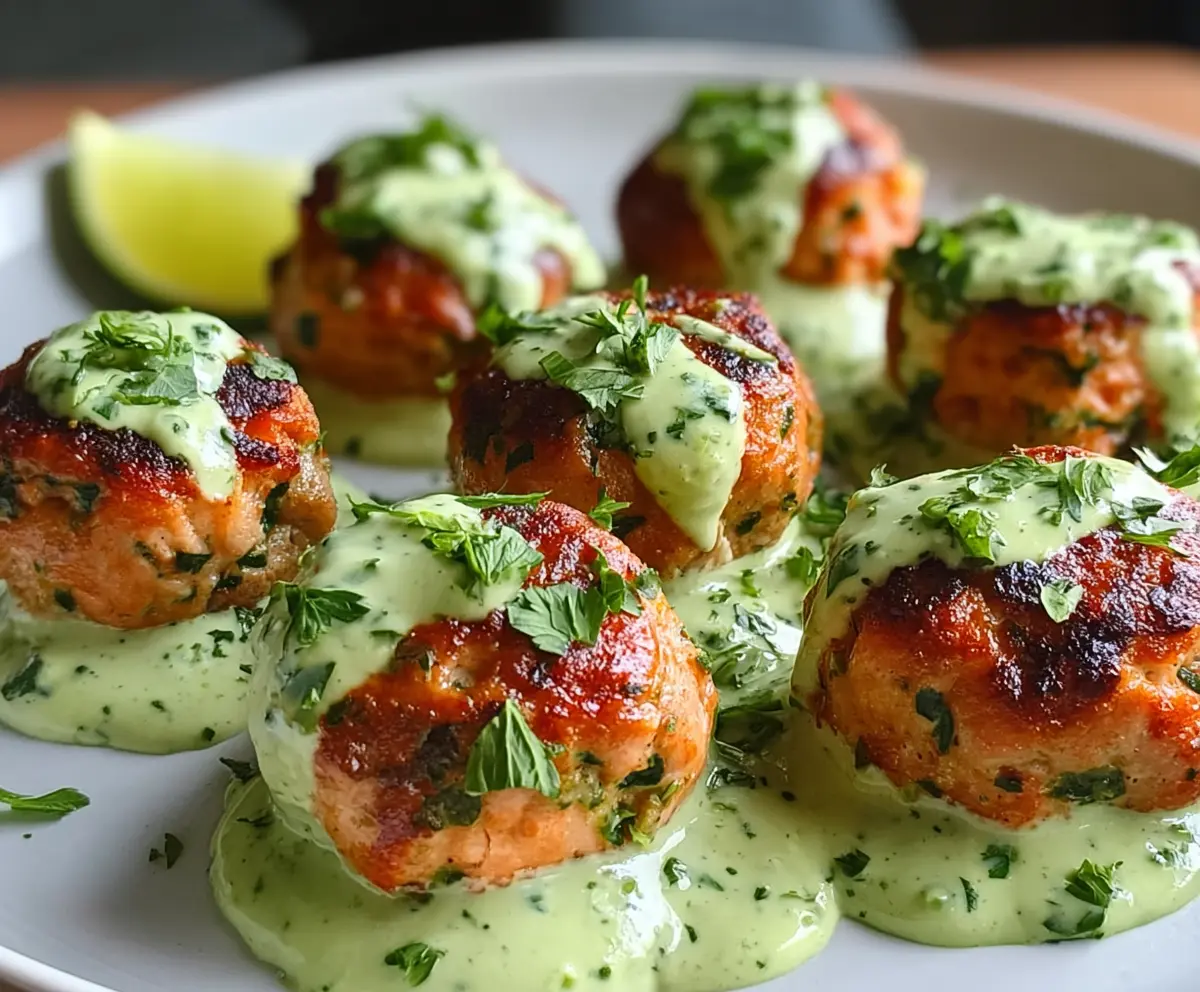 Enjoy your flavorful and healthy baked salmon meatballs with the cool, tangy avocado sauce—perfect for dipping!