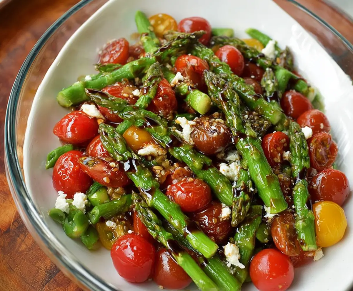 This Balsamic Asparagus Tomato Salad is a colorful and refreshing dish. Crunchy asparagus and juicy tomatoes come together with a tangy balsamic dressing that brings it all to life!