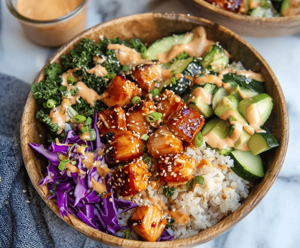 Bang Bang Salmon Bite Bowls are a fun and tasty dish! With crispy salmon bites drizzled in a creamy and spicy sauce, these bowls are packed with flavor and excitement in every bite.