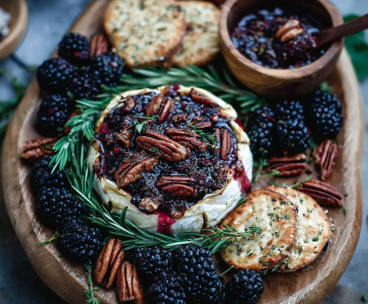 This warm brie topped with tangy blackberry compote and spicy pecans is simply delightful! Perfect for sharing at gatherings, it’s a show-stopper that will impress your friends.