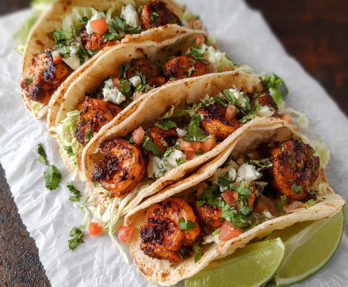 Enjoy your flavorful Blackened Shrimp Tacos with a burst of spice, fresh crunch, and citrus zing!