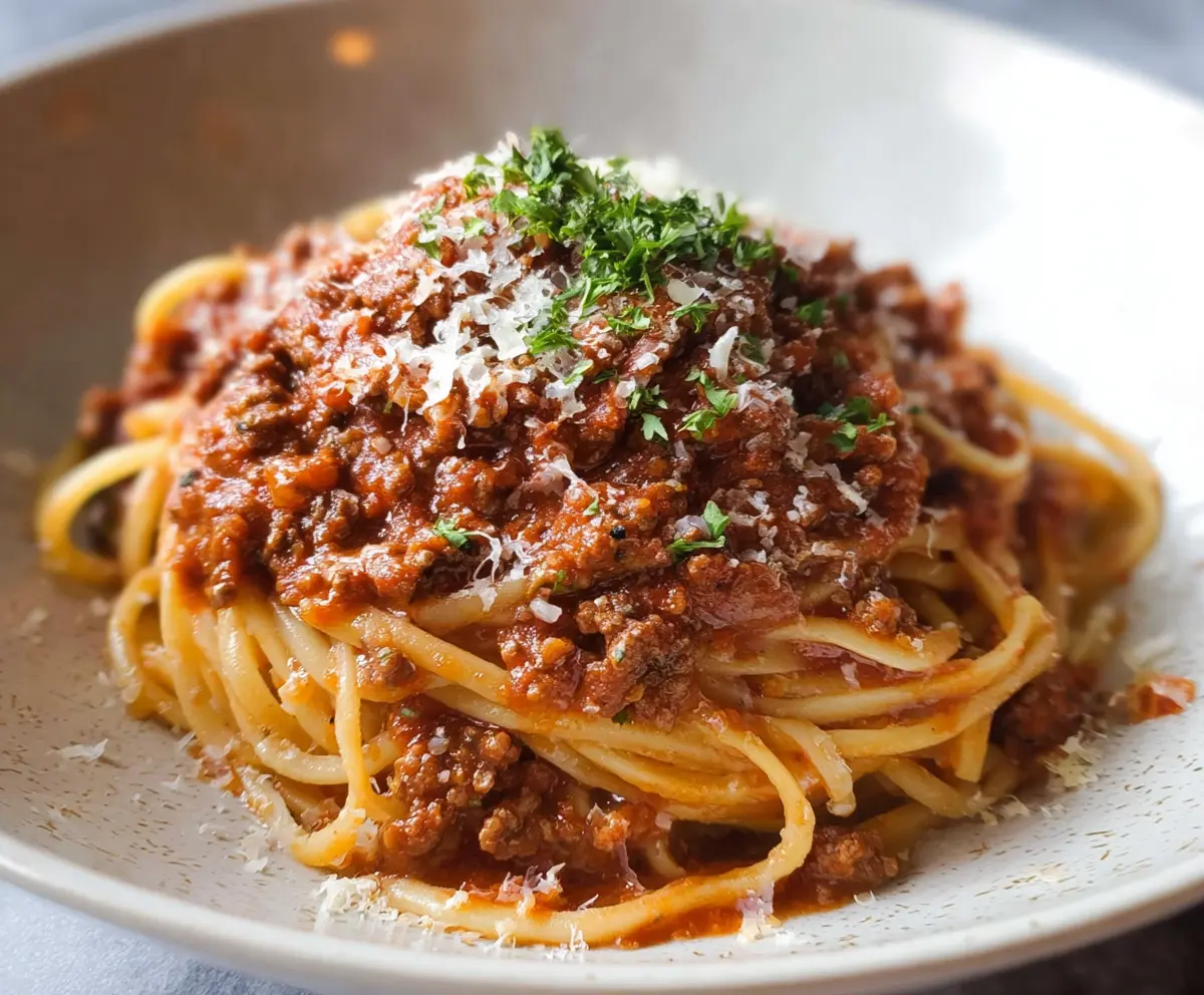 Bolognese pasta is a hearty dish loaded with rich meat sauce, tomatoes, and herbs. It’s perfect for a comforting family dinner, making your kitchen smell amazing!