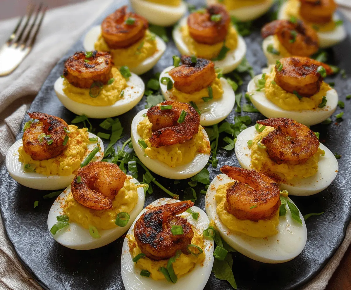 These Cajun Shrimp Deviled Eggs are a fun twist on a classic favorite! They are creamy, zesty, and packed with the delicious flavors of shrimp and spices. Perfect for parties!
