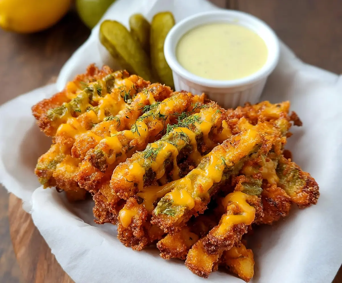 Garnish with freshly chopped parsley for a pop of color! Serve them hot with ranch dressing or your favorite dipping sauce on the side. Enjoy your cheesy, tangy, and oh-so-crispy cheddar pickle fries!