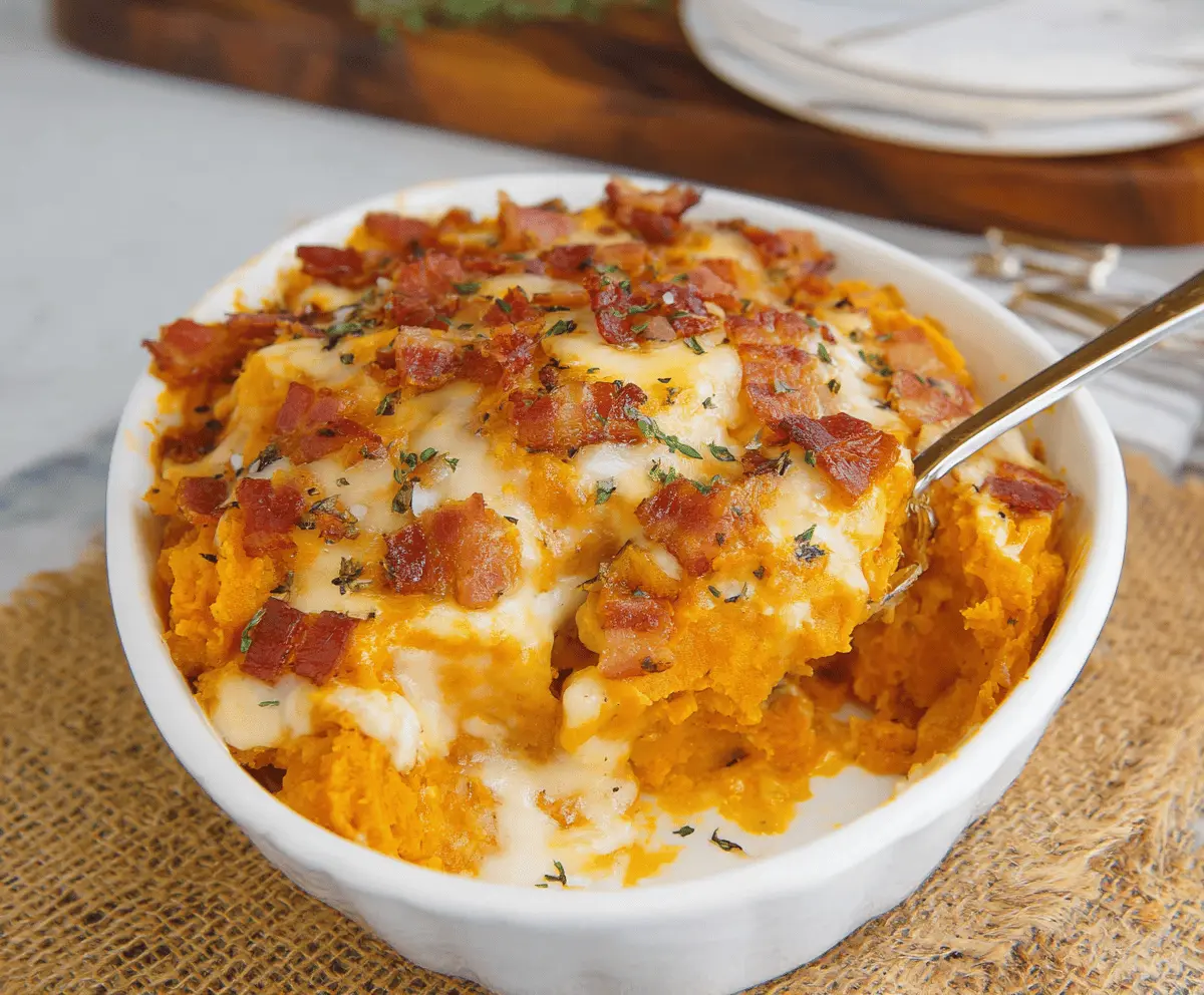 This tasty Cheesy Sweet Potato Casserole brings together creamy sweet potatoes and gooey cheese for a match made in comfort food heaven. It’s a perfect dish for cozy gatherings!