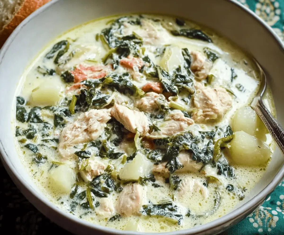 Creamy Chicken Florentine Soup with spinach, tender chicken, and fresh herbs in a bowl