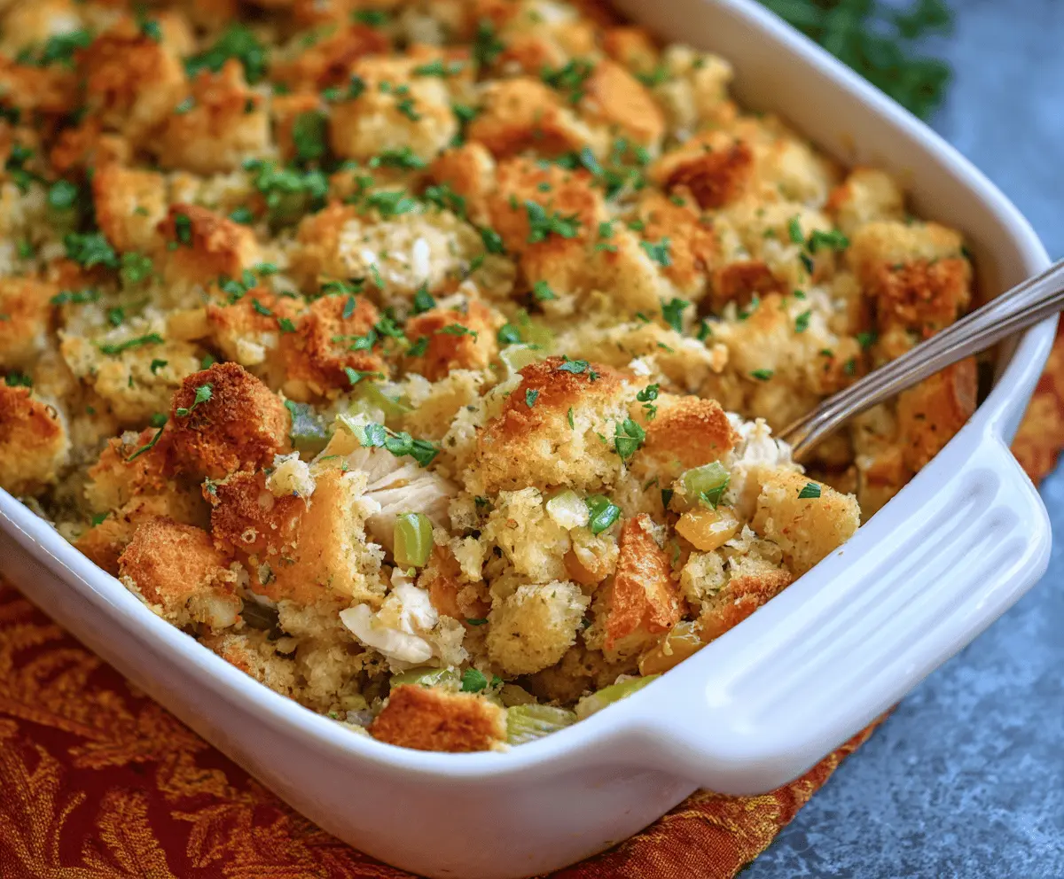 This Chicken & Stuffing Casserole is a warm and cozy dish that’s super easy to make! It features tender chicken mixed with fluffy stuffing and creamy sauce, making it a hit at any dinner table.