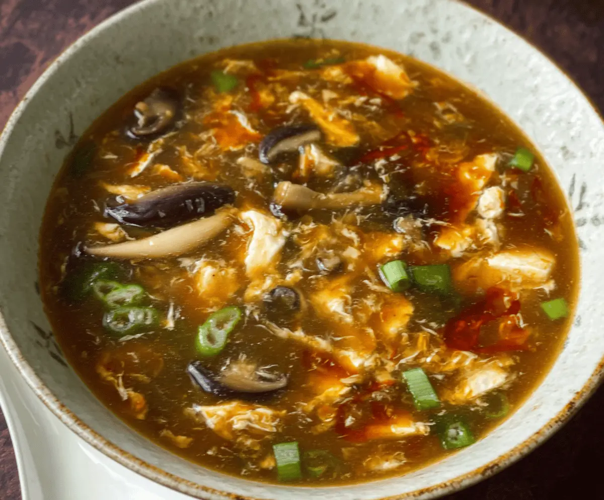 This Chinese Hot and Sour Soup is a warming bowl of goodness! It’s packed with tasty mushrooms, tofu, and bamboo shoots, all swimming in a spicy broth that has just the right kick.
