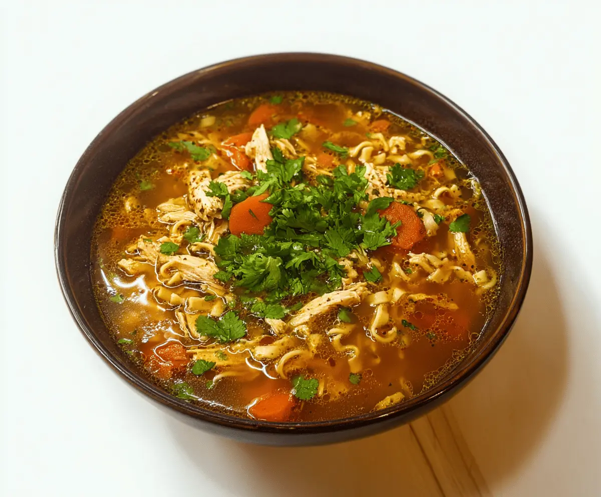 Ladle the warm soup into bowls, and finish with a generous sprinkle of chopped cilantro on top for freshness and color. Your chipotle chicken noodle soup is ready to be enjoyed!