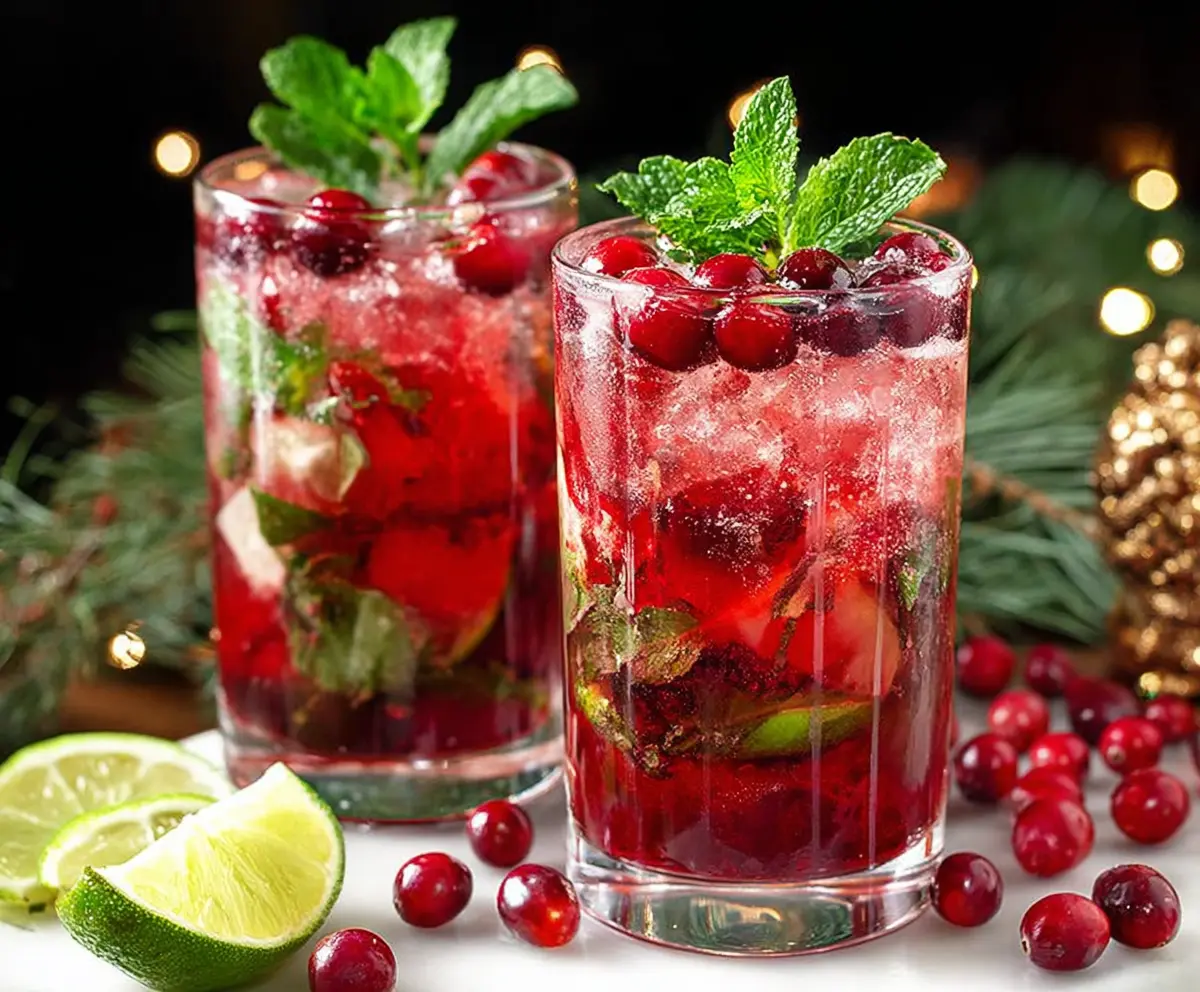 Garnish your drink with a handful of fresh cranberries, a sprig of mint, and a lime slice on the rim. This makes your mojito look even more inviting and festive!