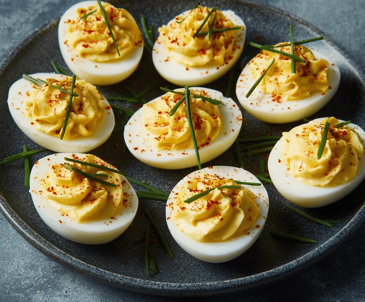Classic deviled eggs are a fantastic snack that’s creamy, tangy, and oh-so-delicious. Made with hard-boiled eggs, mayo, mustard, and a sprinkle of paprika, they’re bite-sized perfection.