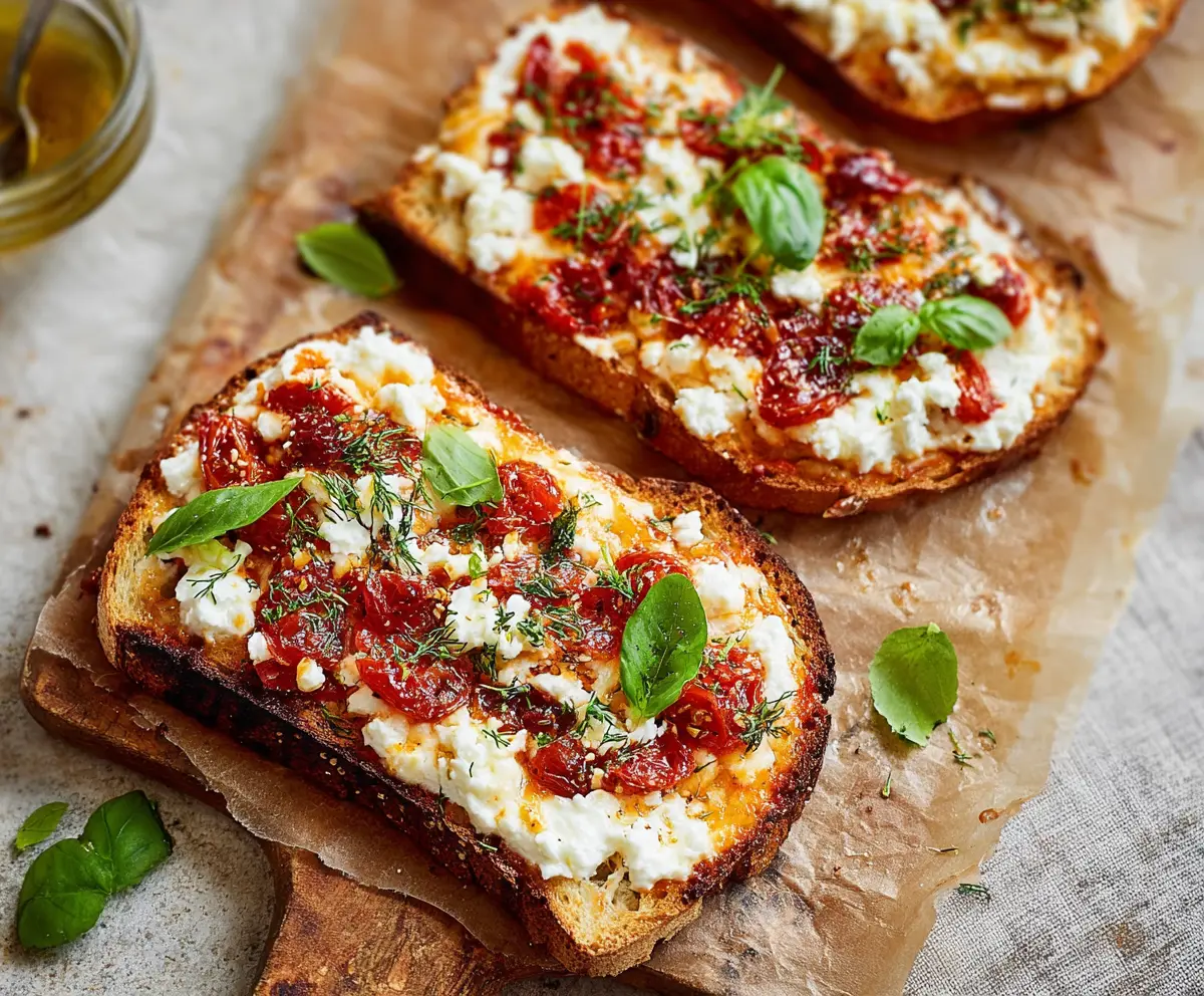 This Cottage Cheese Pizza Toast is a fun and easy way to enjoy pizza flavors on toast! Just spread creamy cottage cheese on your favorite bread, add some tasty toppings, and bake until warm.