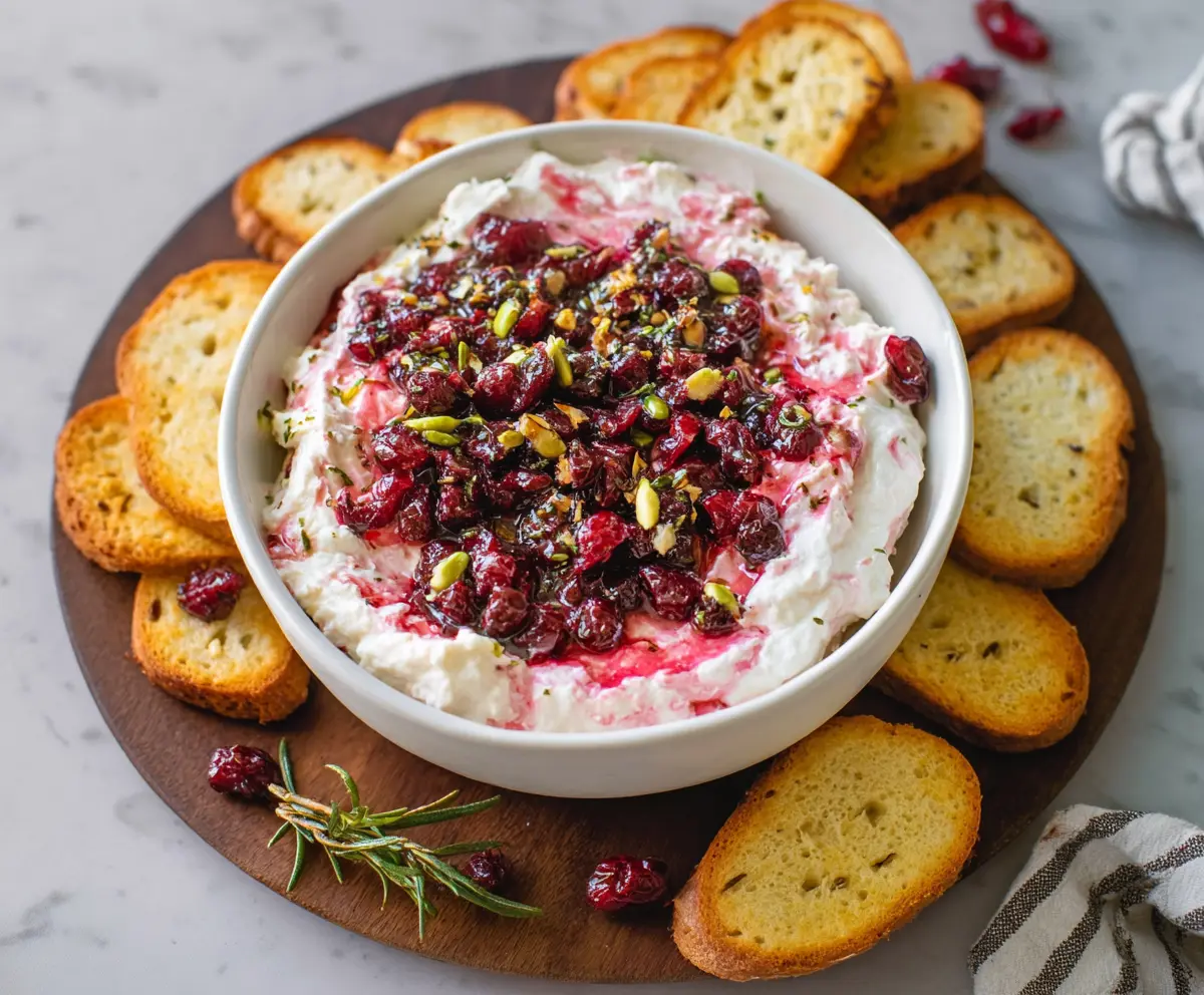This dip is a great blend of creamy, tangy feta with the sweetness of cranberries, making it a hit at any gathering. Enjoy every bite!