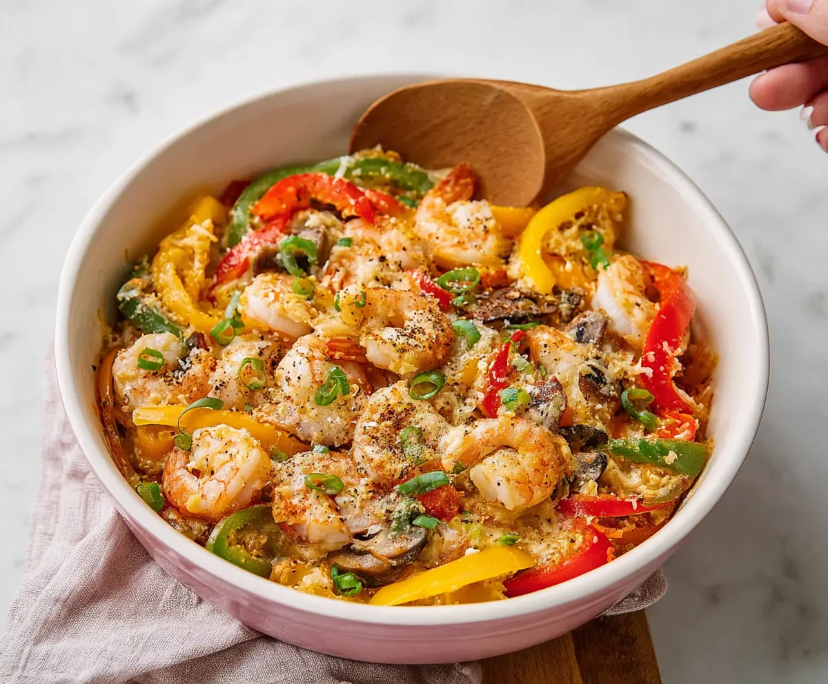 This dish combines the smoky, spiced flavors of fajitas with tender shrimp and colorful peppers in a delightful, cheesy casserole that’s easy to prepare and perfect for dinner. Enjoy!