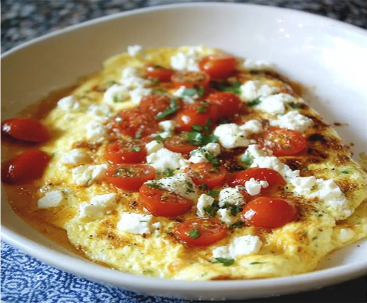 This simple yet flavorful omelet highlights the creamy saltiness of feta balanced with the fresh acidity of tomatoes, making for a delightful breakfast or brunch dish.