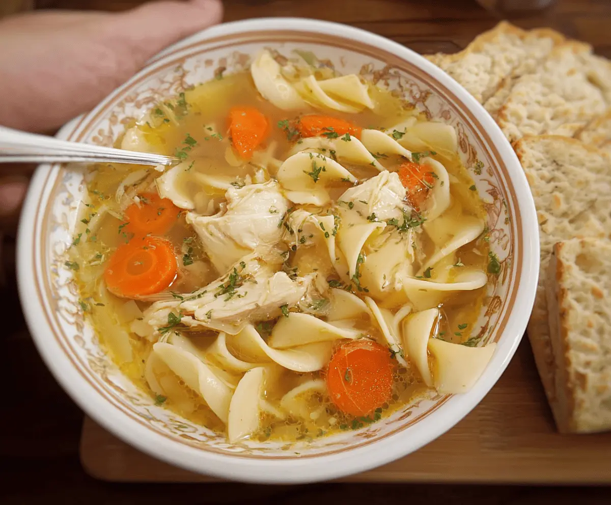 This recipe yields a classic, comforting chicken noodle soup, loaded with tender chicken, savory noodles, and vibrant carrot slices in a warm, aromatic broth — just like Grandma used to make. Enjoy every spoonful!