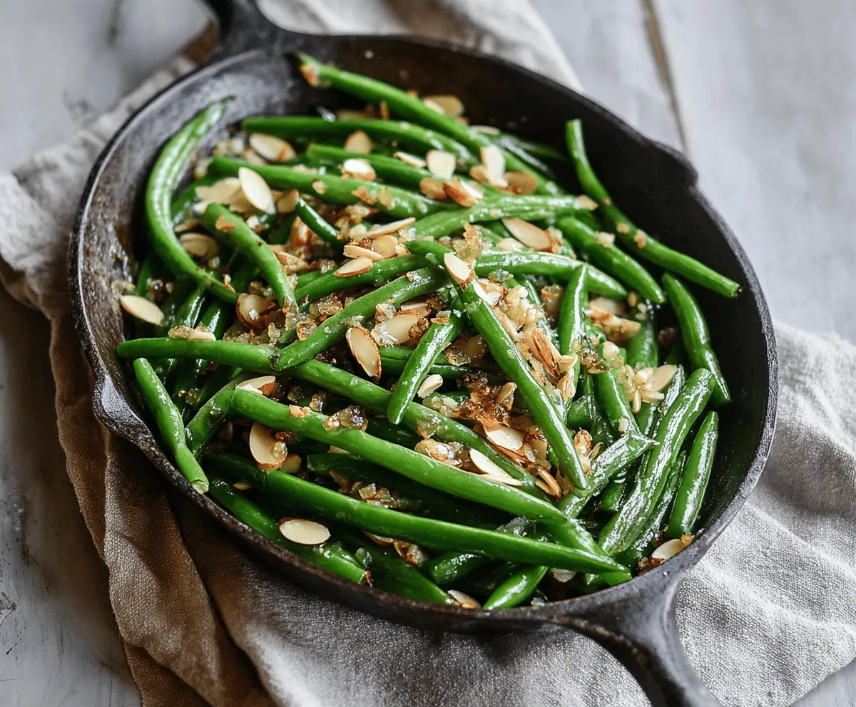 Green Bean Almondine is a tasty dish where fresh green beans are cooked until they’re bright and crisp, topped with crunchy almonds and a little butter. It’s delicious and easy to make!