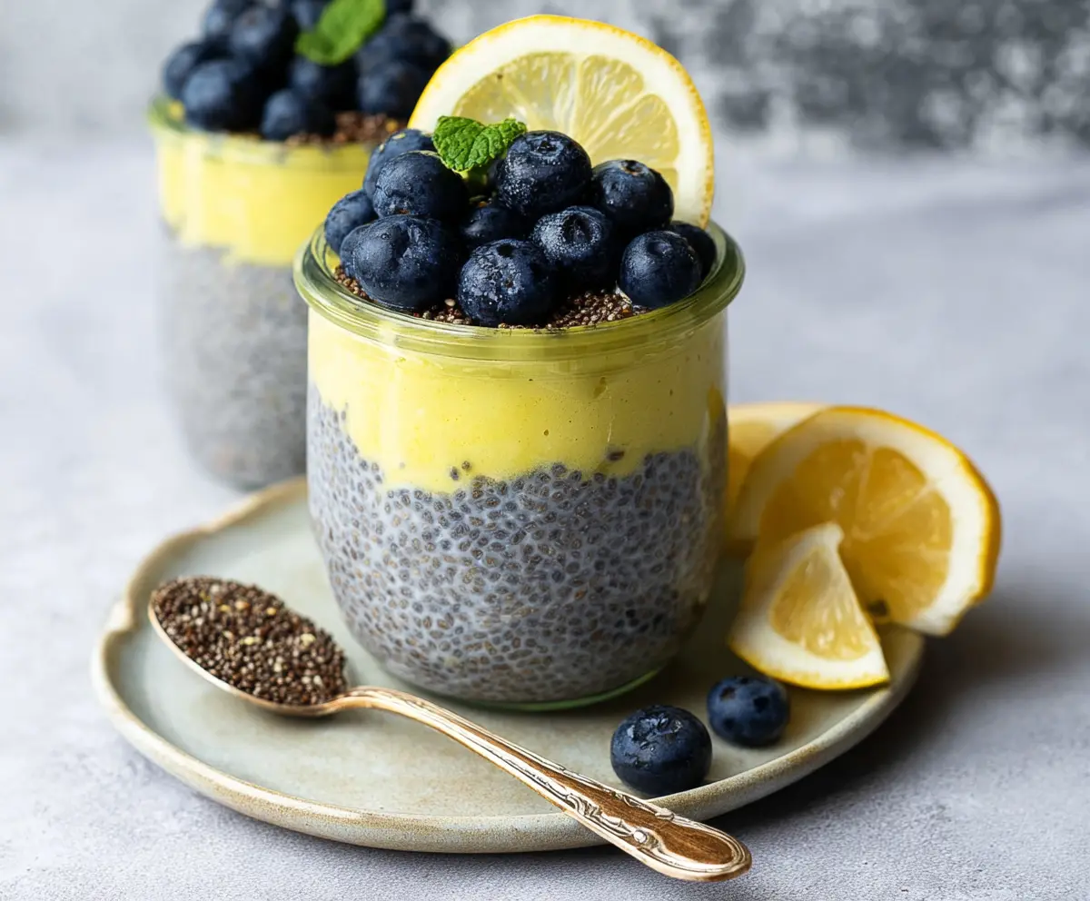 Garnish with lemon slices and a sprig of fresh mint for an extra touch. Serve chilled, and enjoy your refreshing Lemon Blueberry Chia Pudding!