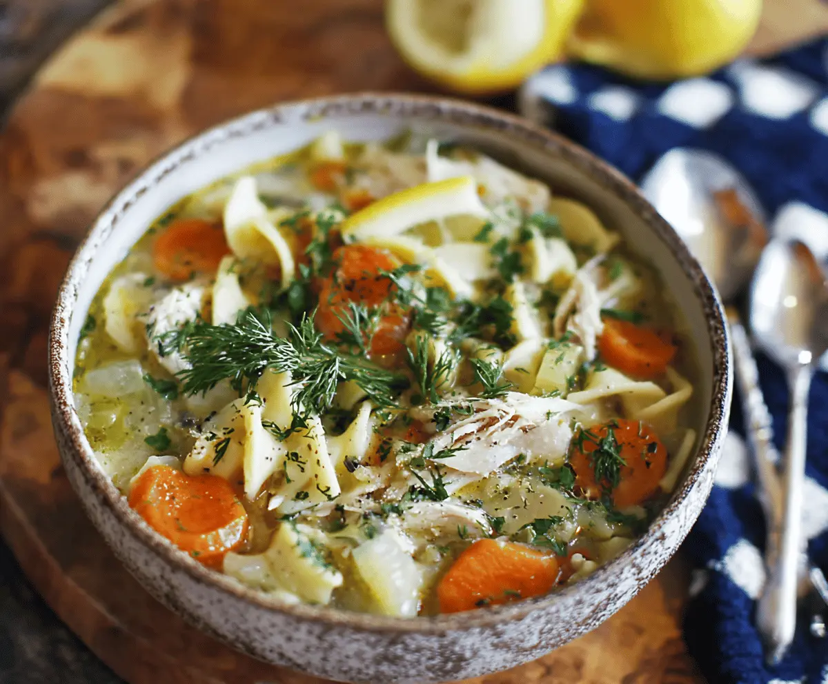 Enjoy your delightful Lemon Dill Chicken Noodle Soup that beautifully combines hearty chicken and noodles with fresh citrus and herbal notes! 😊