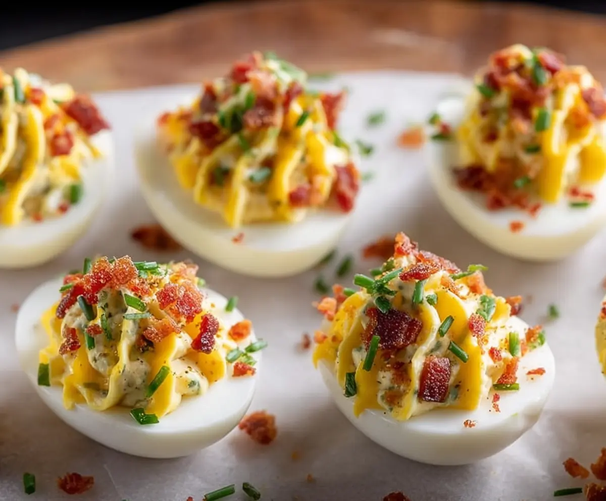 Enjoy your loaded deviled eggs packed with creamy, cheesy, and savory flavors. They’re a hit at any gathering or just for a tasty snack!