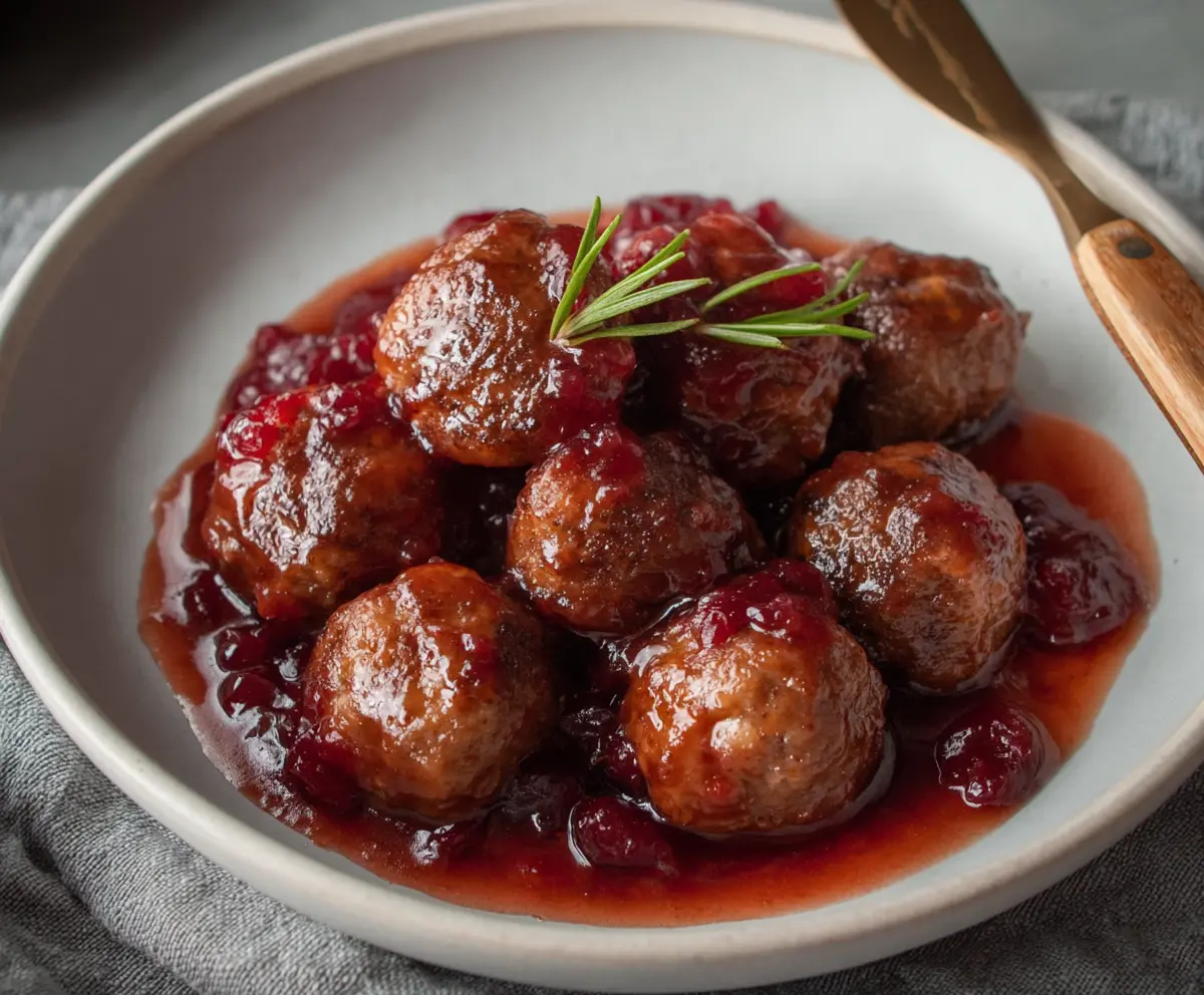 Transfer the meatballs and cranberry sauce to a serving dish. If you’d like, garnish with fresh rosemary sprigs or chopped parsley. Enjoy this delightful dish warm, either on its own, as an appetizer, or served alongside rice, mashed potatoes, or crusty bread!