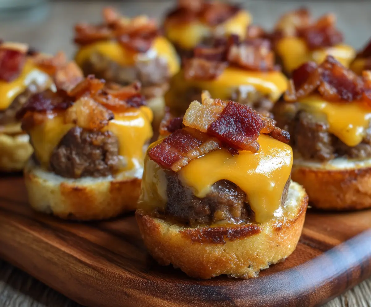 Mini Bacon Cheeseburger Bites are tasty little treats full of juicy beef, melted cheese, and crispy bacon, all packed in a bite-sized form. Perfect for parties or a fun snack!