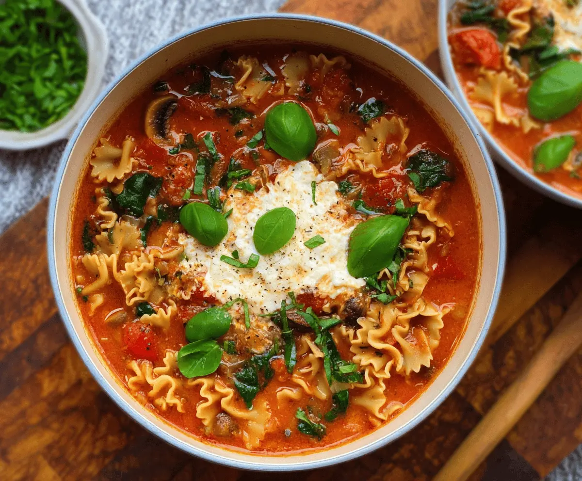This comforting soup combines the familiar flavors of lasagna in a warm, hearty bowl that’s perfect for a simple vegetarian meal!