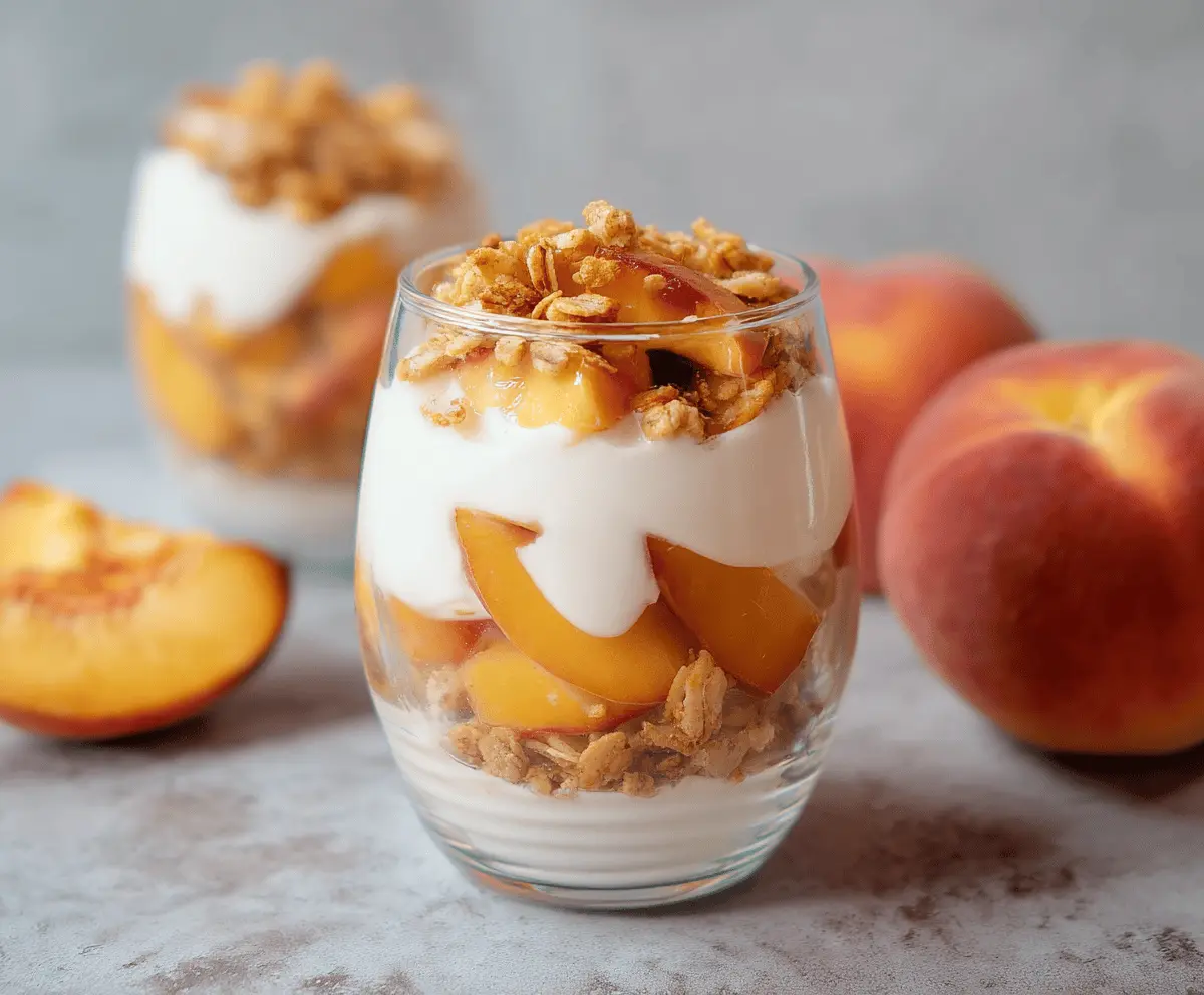 Enjoy this fresh and delightfully layered Peach Yogurt Parfait as a healthy breakfast or a refreshing snack!