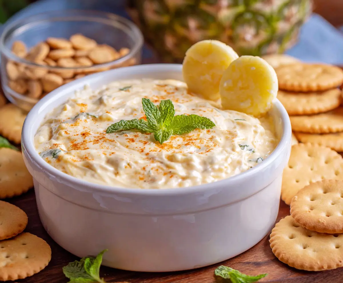 You can serve the dip right away, but if possible, cover it and refrigerate for at least 1 hour. This chilling time helps the flavors blend beautifully. When you’re ready to enjoy, serve it with round crackers or fresh pineapple slices on the side.
