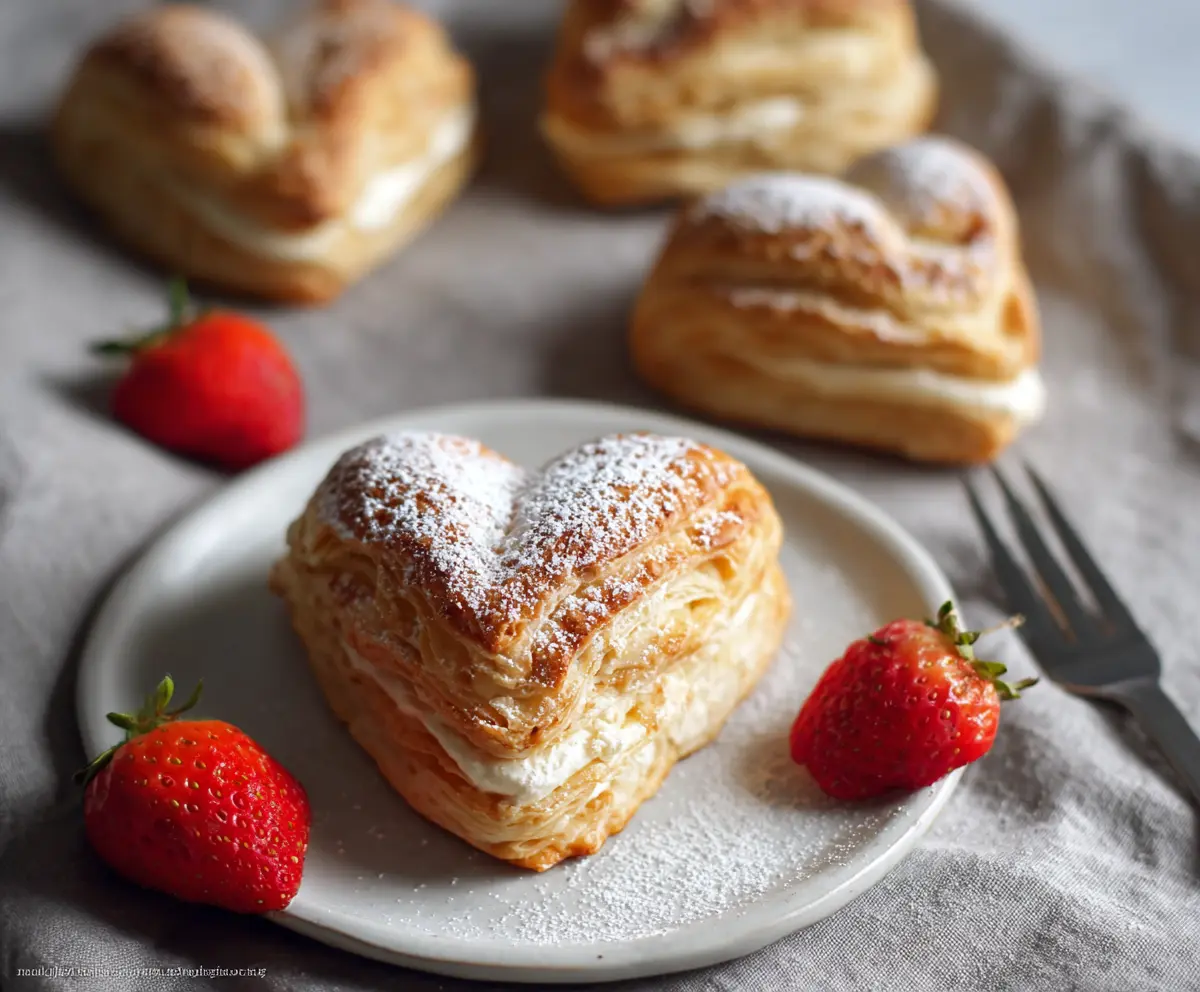 Enjoy these flaky, sweet puff pastry hearts that are perfect for a romantic treat or a fancy dessert! They’re sure to wow your guests—or even just make any day feel special! ❤️