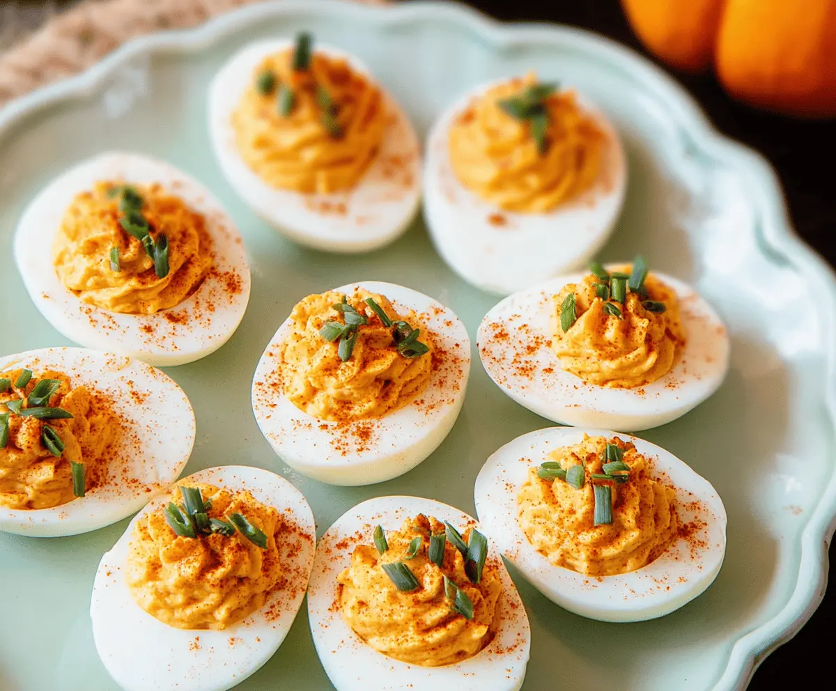 Enjoy your festive and delicious pumpkin deviled eggs, perfect for fall gatherings or any special occasion!