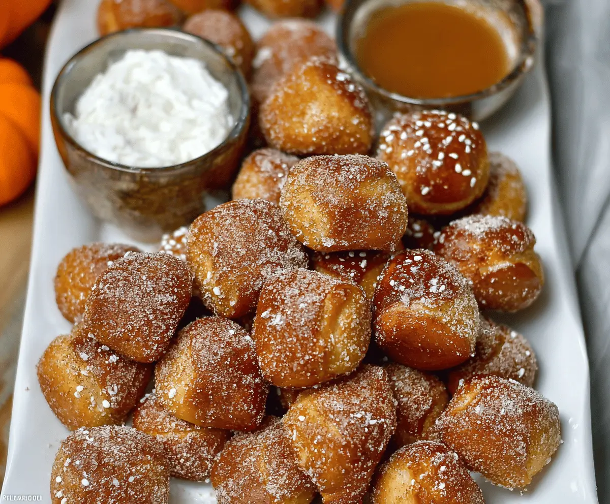 Enjoy your soft, cinnamony Pumpkin Pretzel Bites, perfect for fall gatherings! They’re a sweet and savory snack everyone will love! 🎃🥨