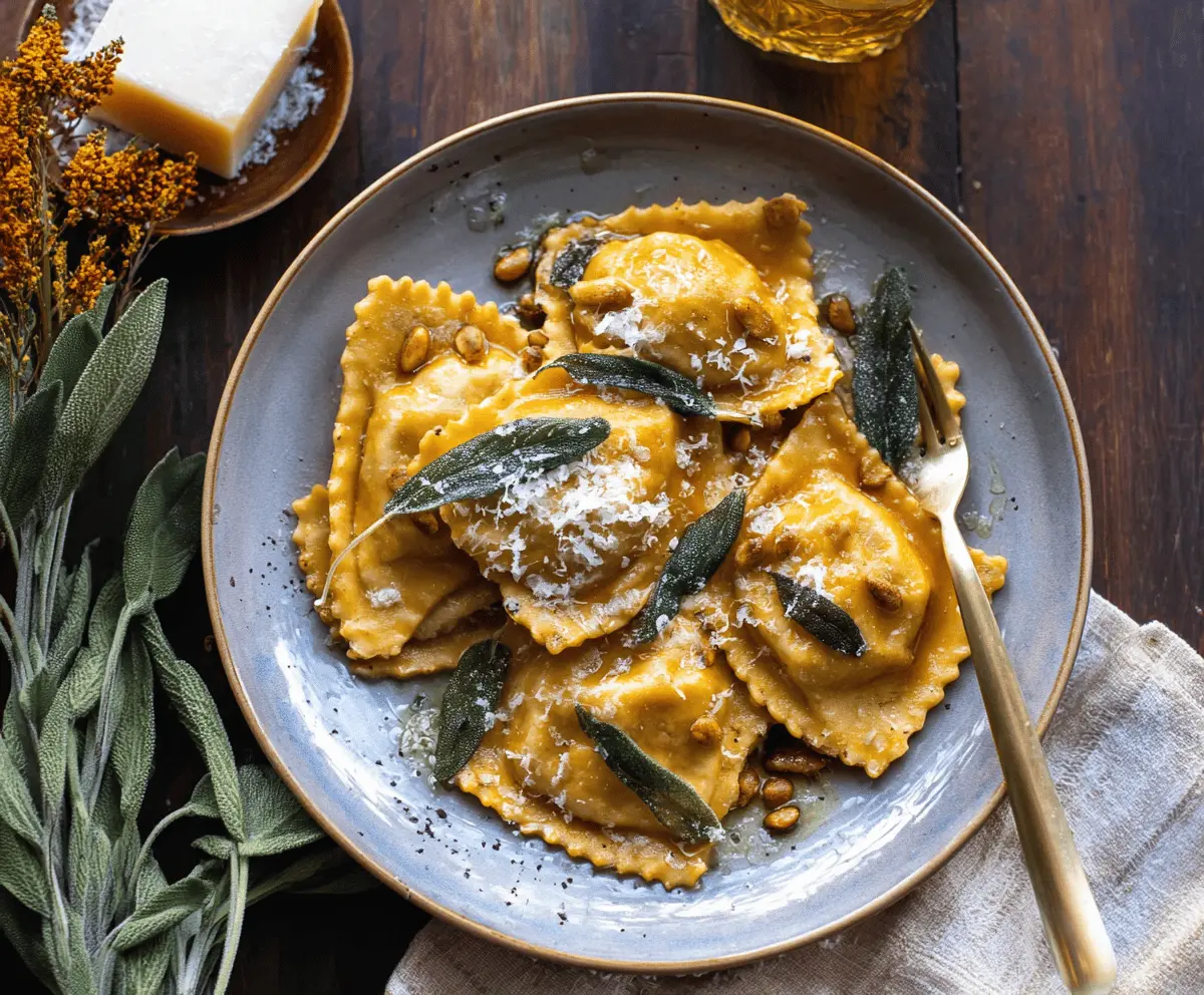 Enjoy your homemade Pumpkin Ravioli with Brown Butter Sage, an absolute delight for your taste buds this autumn!