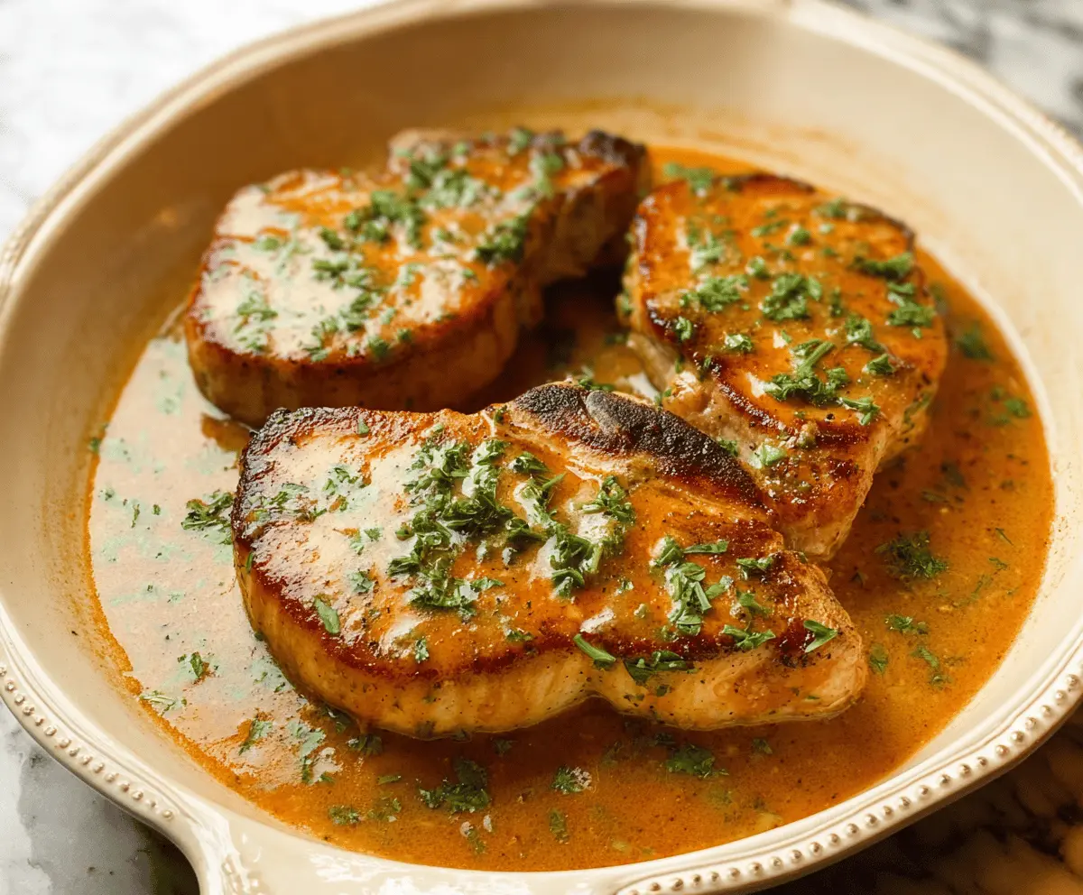 Return the pork chops to the skillet and spoon some of that lovely sauce over them. Let them warm through for about 1-2 minutes, ensuring they’re heated just right.