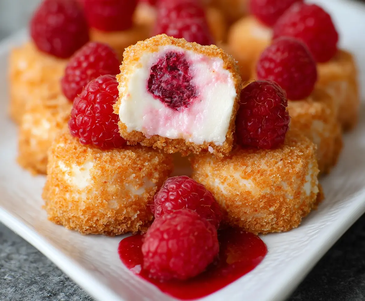 These cheesecake bites are not only delicious but also easy to make. Perfect for parties or just a sweet snack, you’ll love the combination of creamy, tangy cheesecake and the freshness of raspberries! Enjoy!