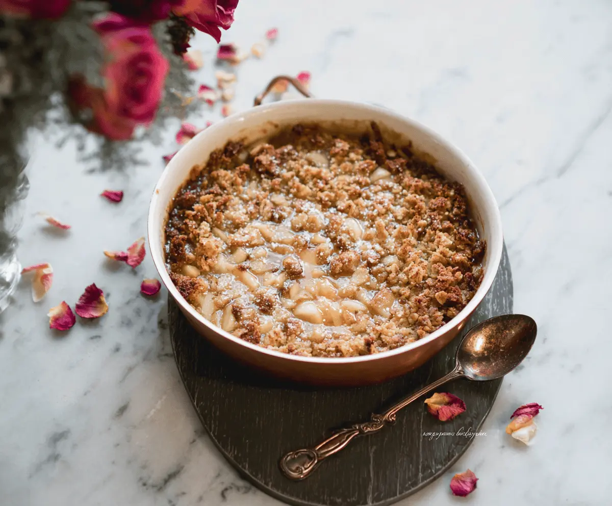 This Rose Water Apple Crisp is a sweet twist on a classic dessert! With juicy apples, warm spices, and a hint of fragrant rose water, it’s simply delightful.