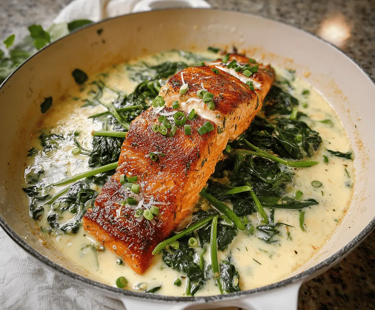 Salmon Florentine with Garlic Cream Sauce