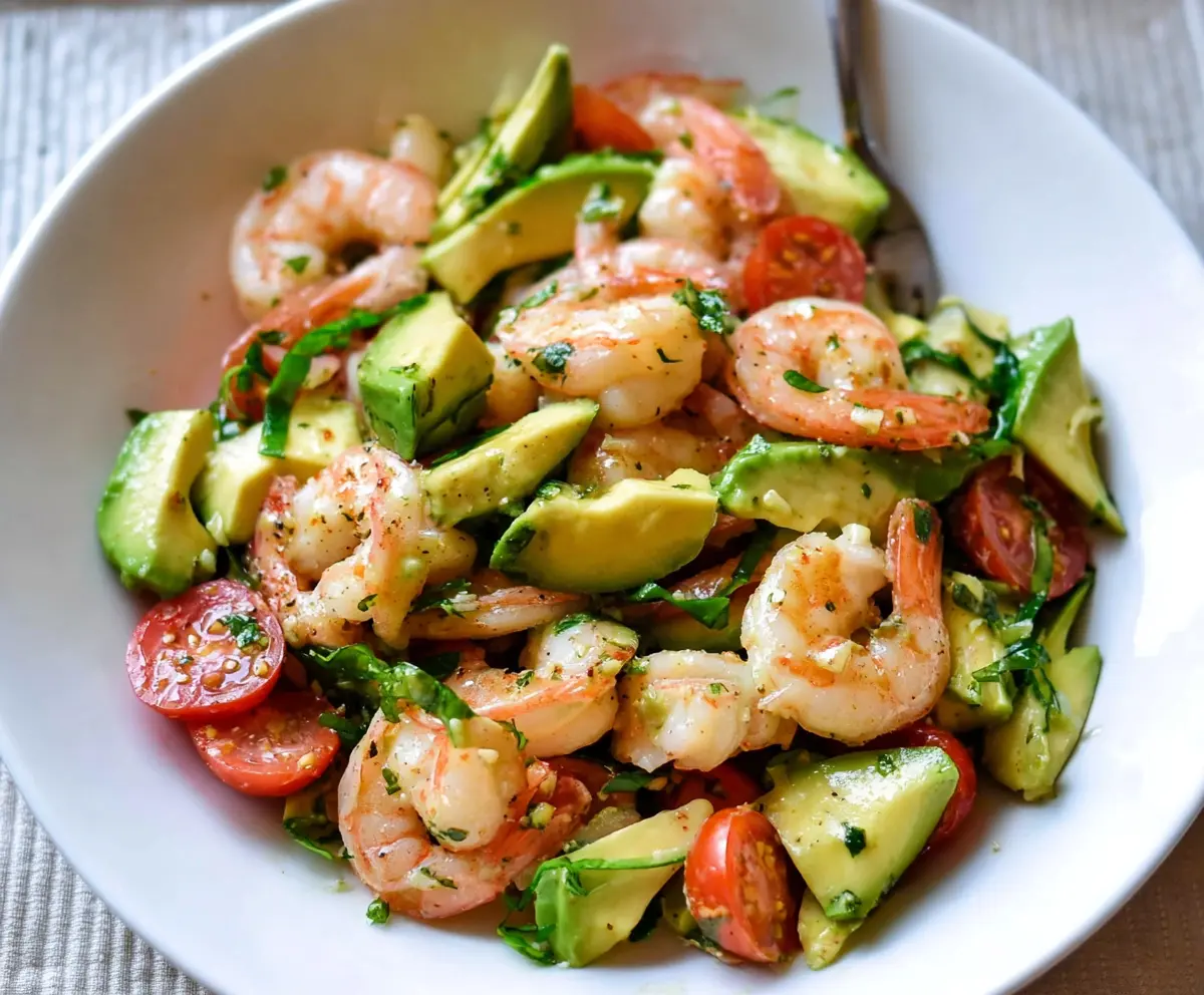 This shrimp and avocado salad is fresh and light, perfect for a sunny day! The juicy shrimp pairs beautifully with creamy avocado and crunchy veggies for a tasty bite.