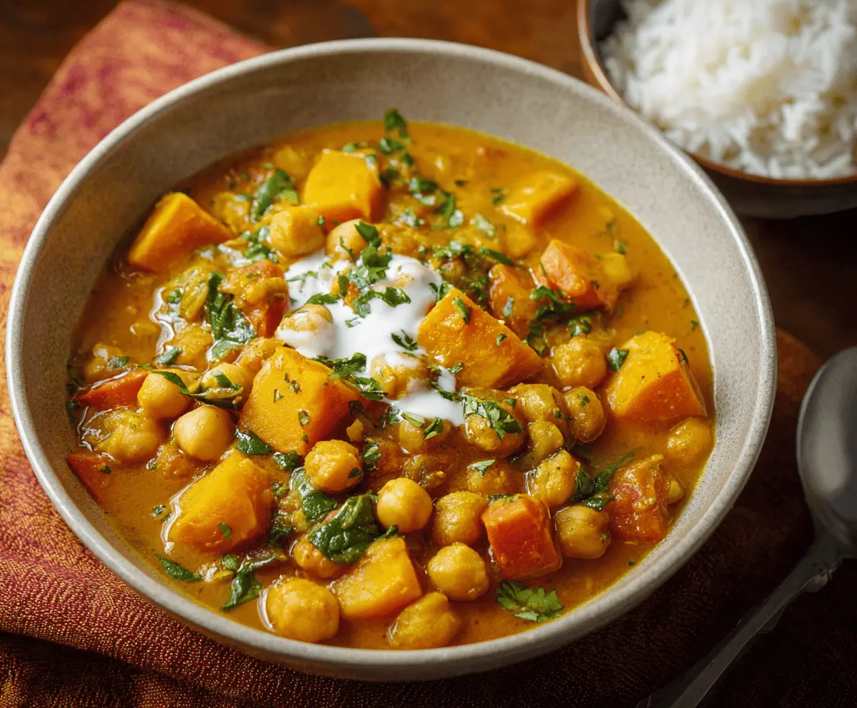 This Sweet Potato Chickpea Curry Soup is a warm bowl of goodness! It combines creamy sweet potatoes with hearty chickpeas, all spiced up with aromatic curry flavors.