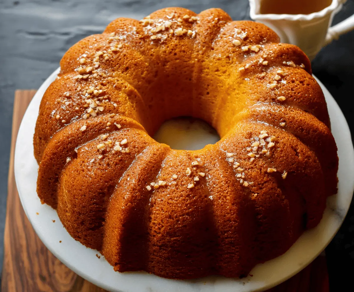 Pour the batter into the prepared bundt pan, smoothing the top with a spatula. Place it in the oven and bake for 60-70 minutes. You’ll know it’s done when a toothpick inserted near the center comes out clean.