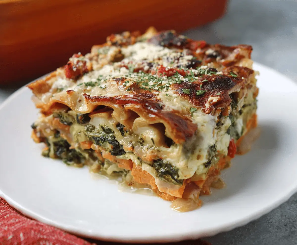 This tasty Sweet Potato Spinach Lasagna is packed with layers of creamy cheese, tender spinach, and sweet potato goodness. A comforting dish that’s both hearty and healthy!