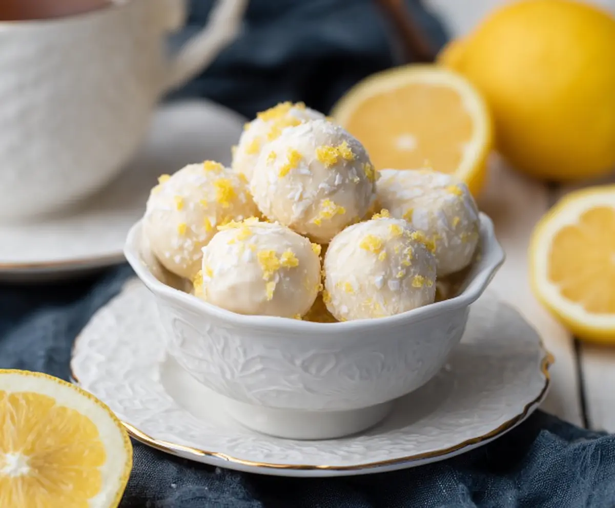 Roll each truffle ball in shredded coconut to coat them evenly. For a festive touch, you can sprinkle on some extra lemon zest or dust with powdered sugar for added sweetness.