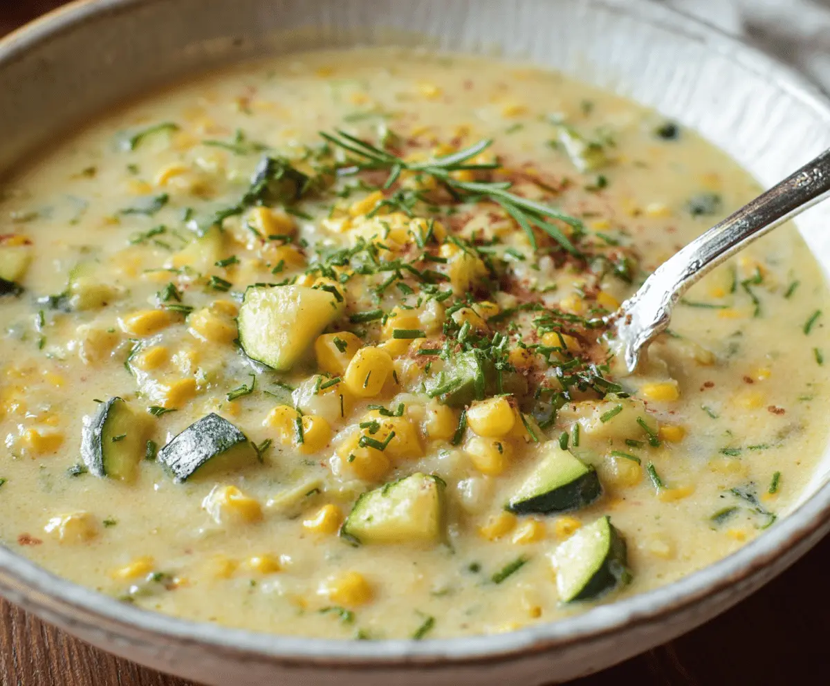 Serve warm with crusty bread or crackers on the side, and enjoy your creamy, fresh, and comforting Zucchini Corn Chowder!